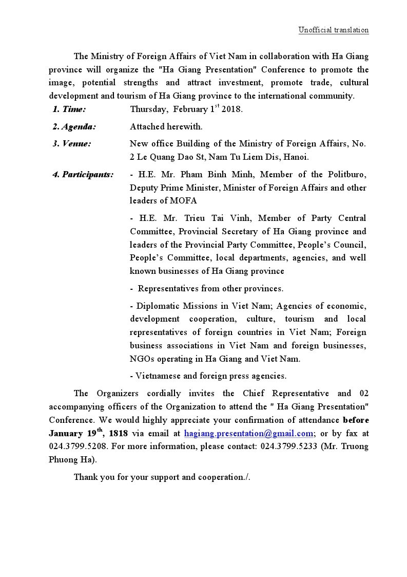 3. 장 소: 외교부 본사(새로운 건물),No.2 Le Quang Dao, Nam Tu Liem, Ha Noi.
