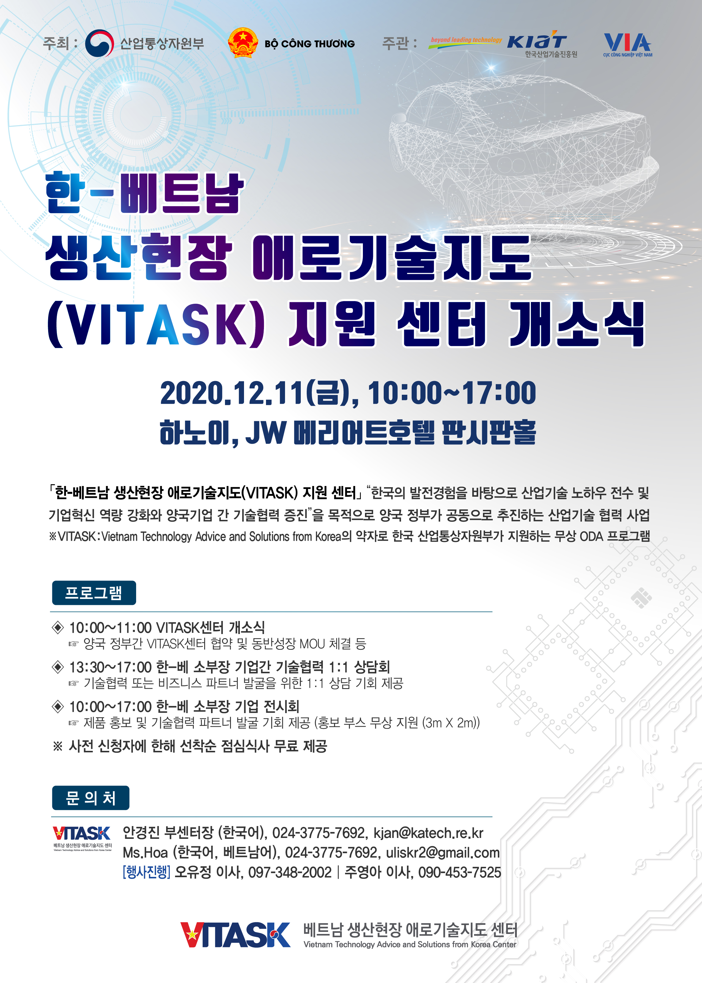 공지 사항 한-베트남 생산현장 애로기술지도(VITASK) 지원 센터 개소식 by 관리자 2020-11-19 546 첨부파일 VITASK 개소식 참여기업 모집_v3.docx 1.36 MB 댓글(0) 등록