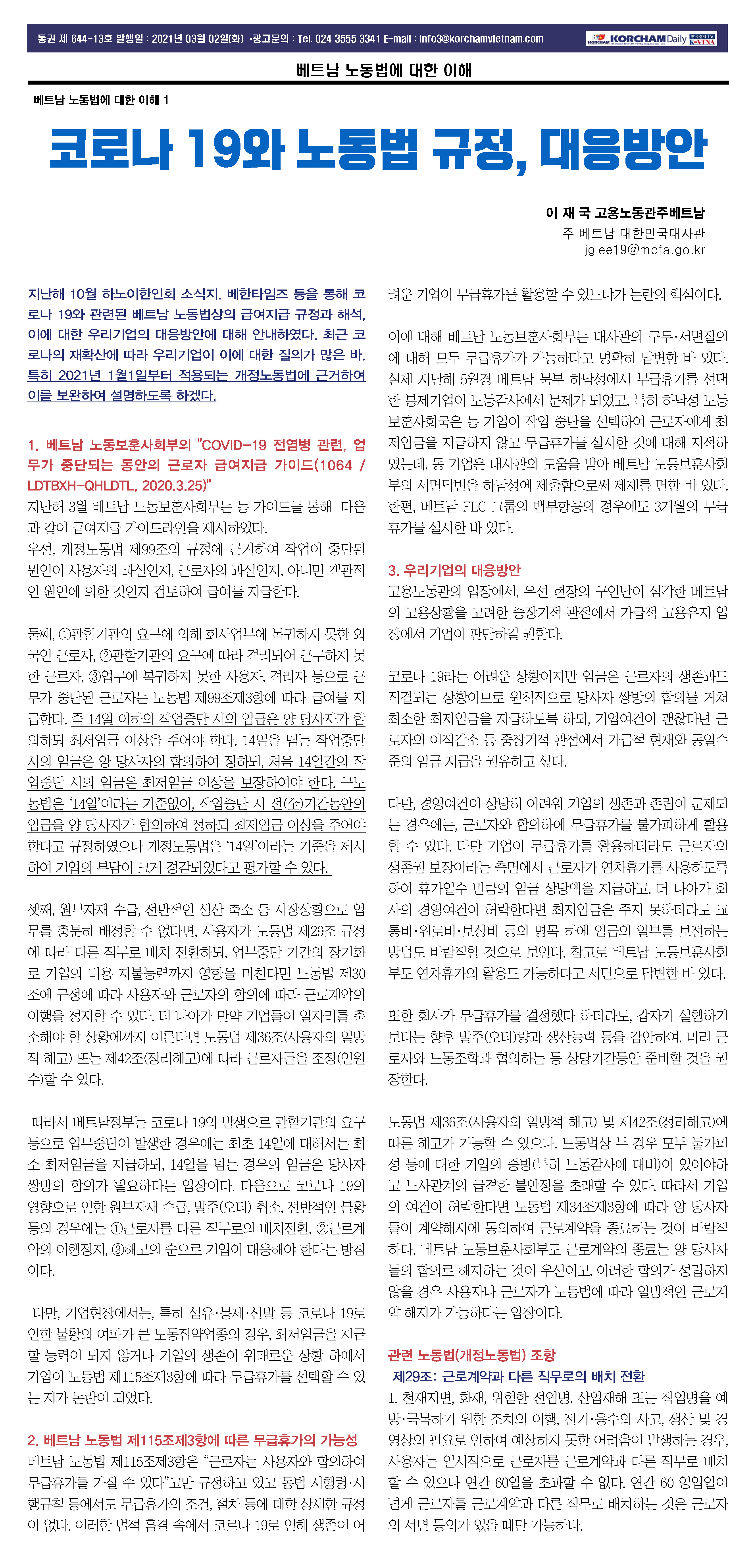 [대사관] 코로나19와 노동법 규정, 대응방안
