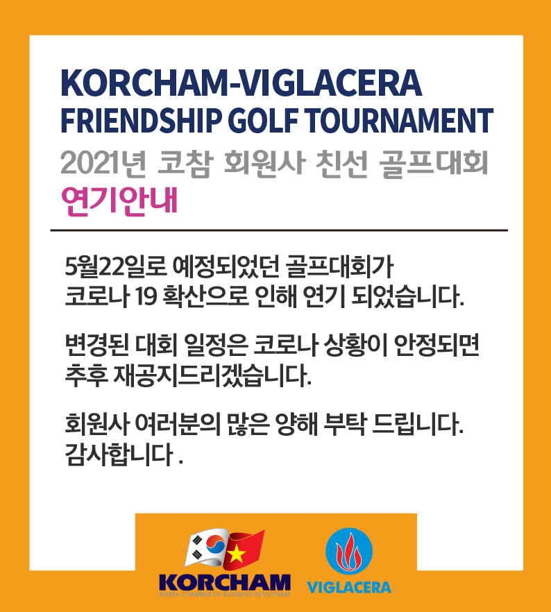 2021년 5월 22일(토)로 예정되었던 골프대회가 코로나-19 확산으로 인해 연기 되었습니다.