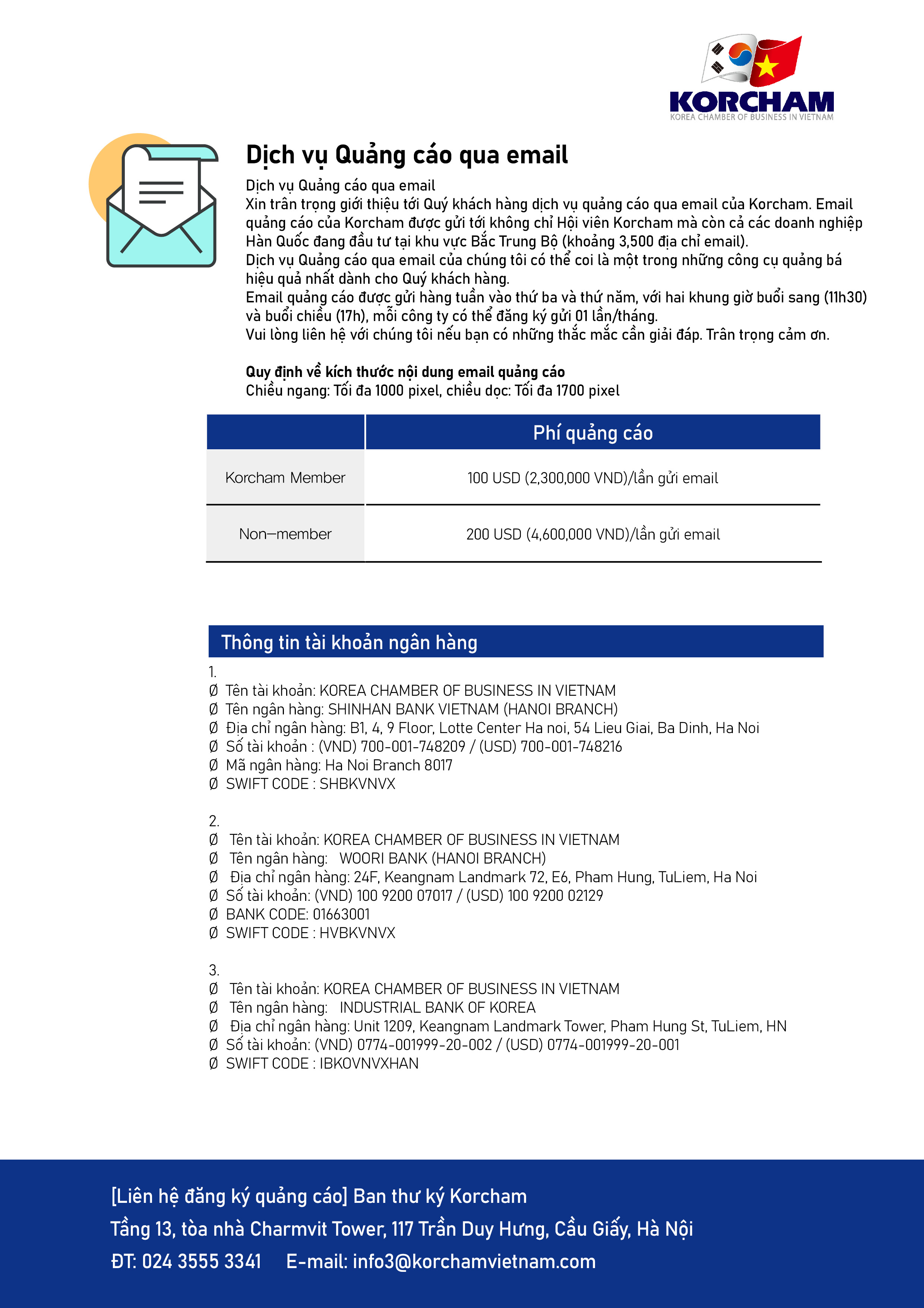 각종 행사 홍보 패키지(메일링+채널/단톡방 홍보 복합) BẢNG GIÁ GÓI QUẢNG BÁ/ TRUYỀN THÔNG KORCHAM