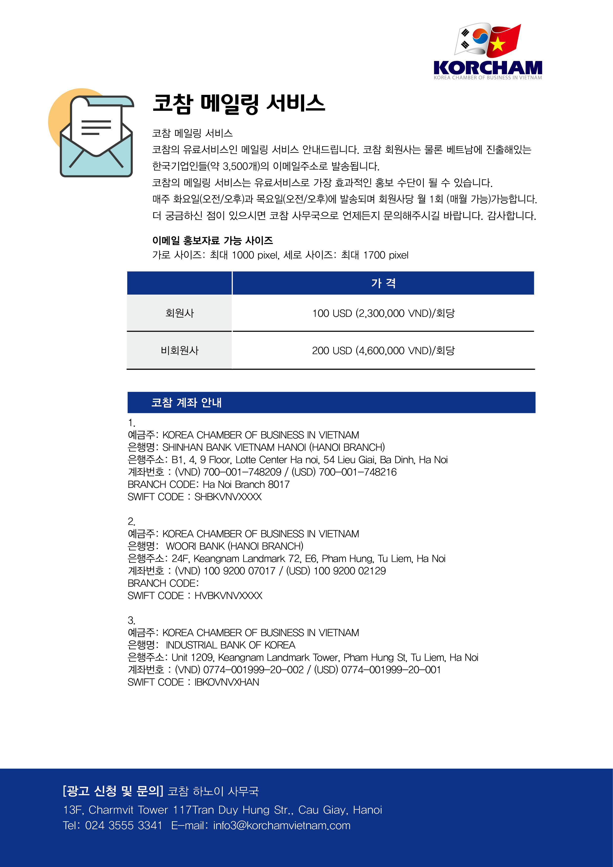 코참 메일링 서비스 이용 안내- DỊCH VỤ MAILING SERVICE CỦA KORCHAM