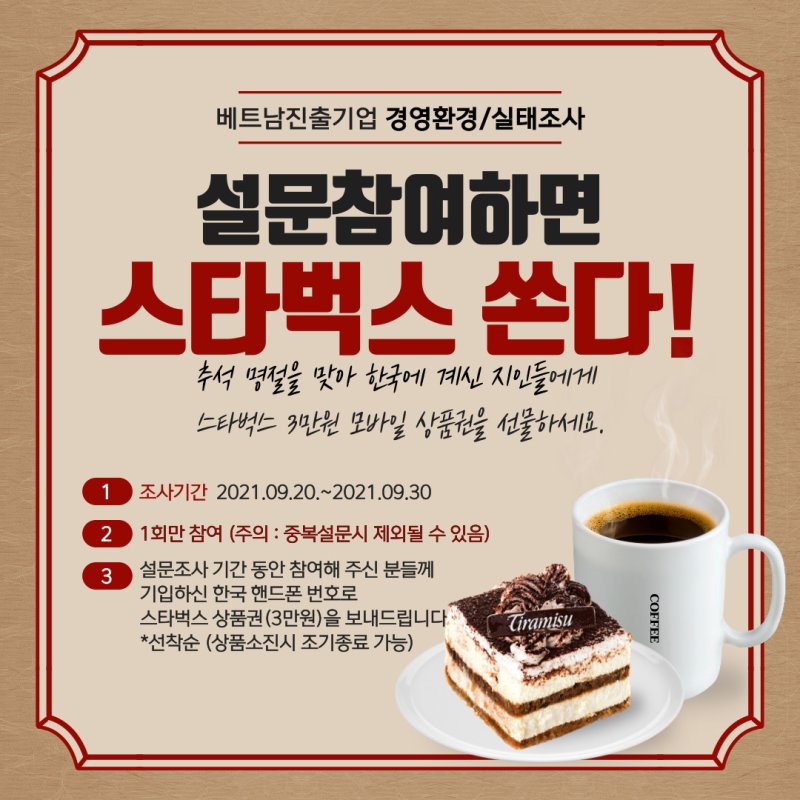 [코참공지] 설문조사 응답하고 ☕ 스타벅스 상품권 선물하세요~*