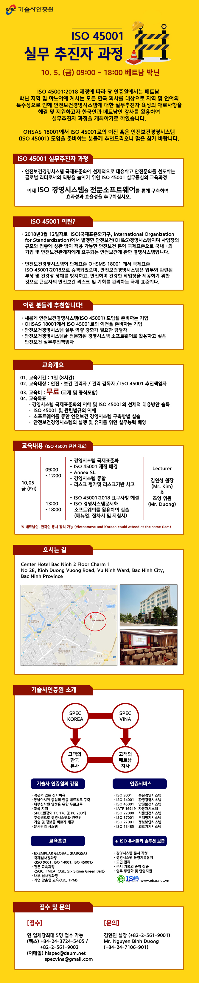 ISO 45001 추진자 "무료" 교육과정 개최_베트남(10월 5일)