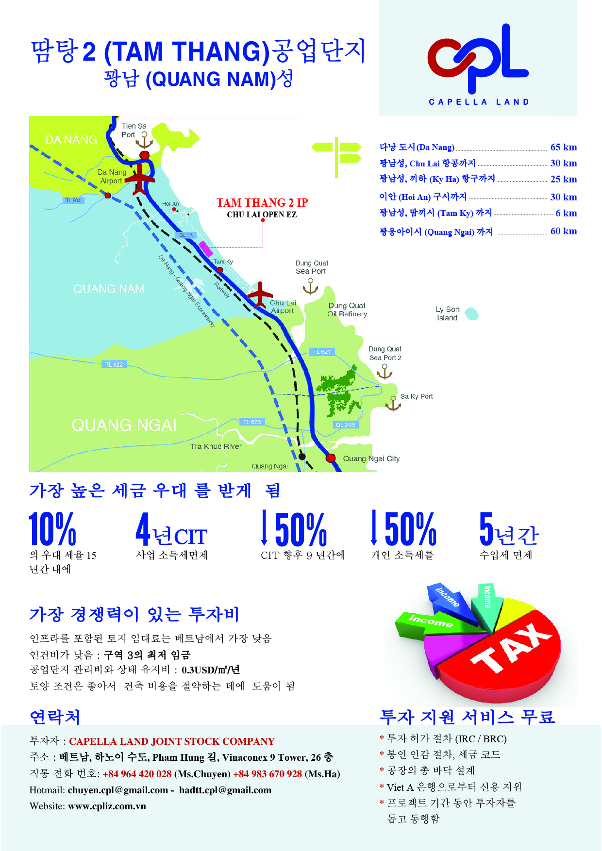 회원사 홍보 꽝남 (Quang Nam)성, 땀탕 2 (Tam Thang)공업단지 by 관리자 2018-10-18 721 첨부파일 181018(1).jpg 1.93 MB 181018(2).jpg 2.15 MB 댓글(0) 등록