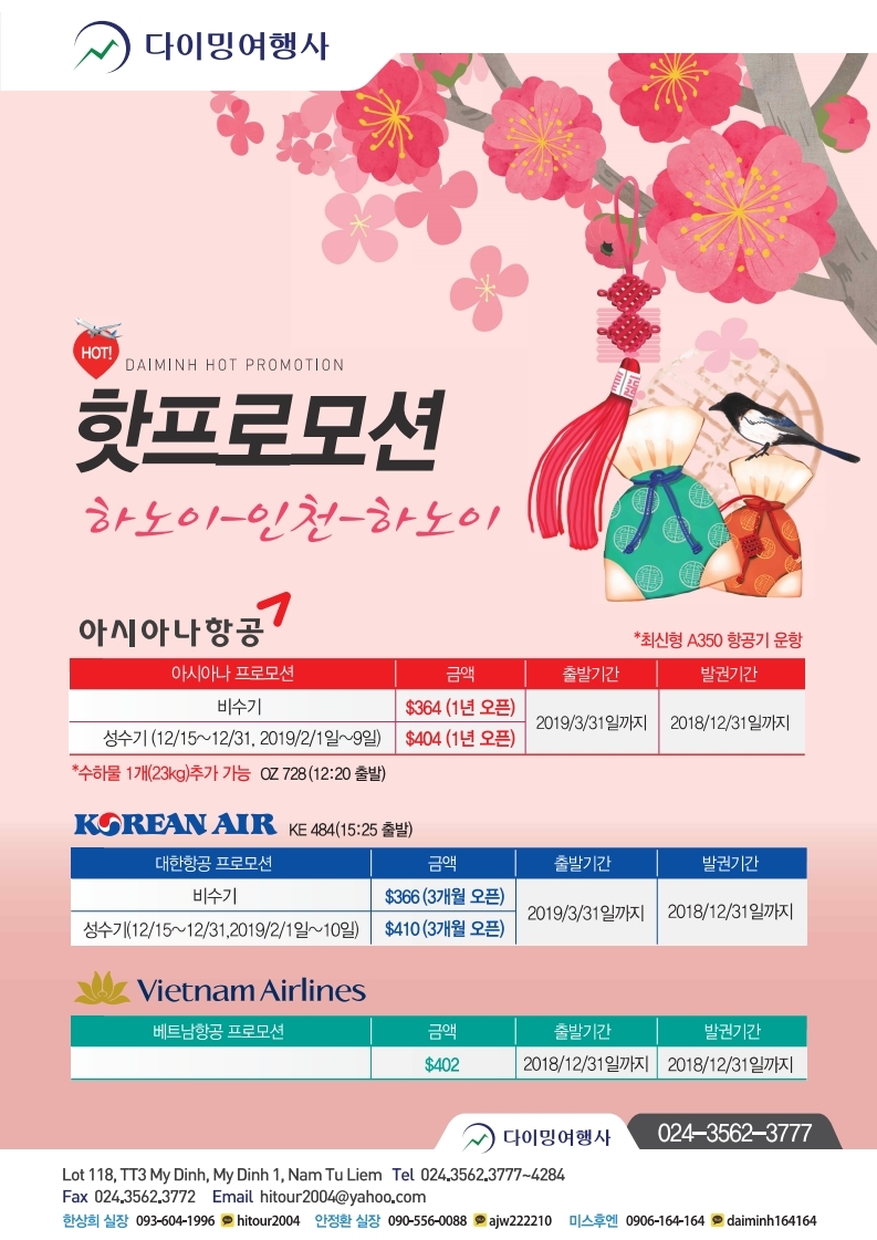 다이밍 여행사 - 신정, 구정 연휴 특가 항공권