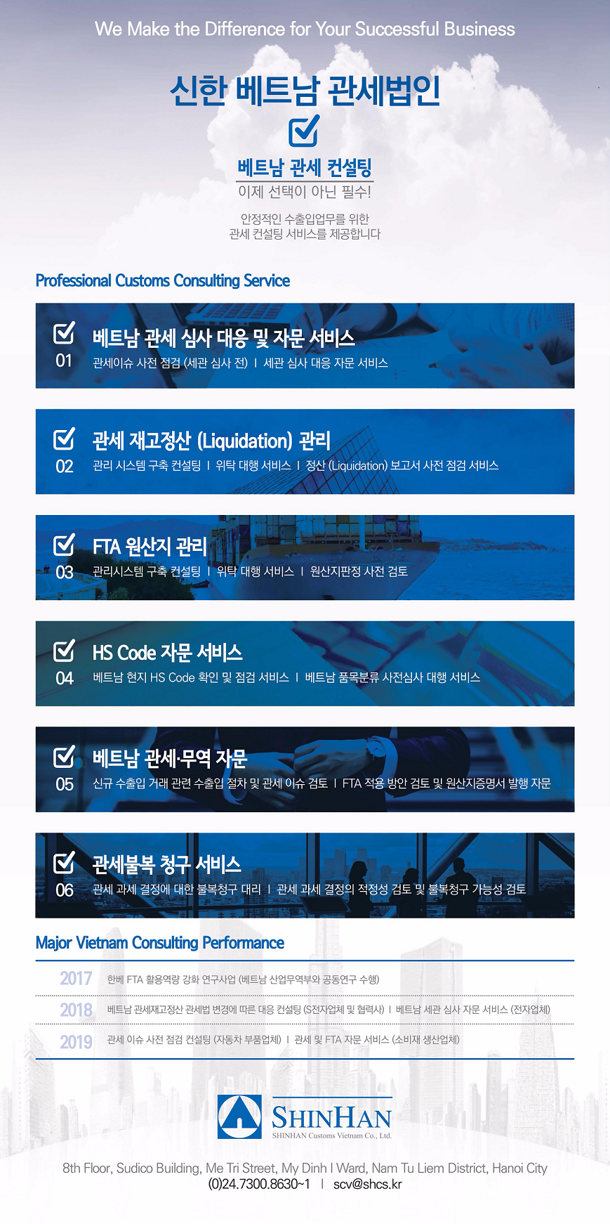 신한 베트남 관세법인_베트남 관세 컨설팅 서비스 제공 안내