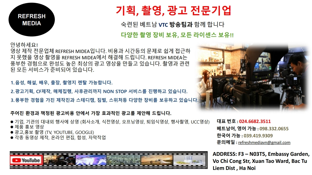 기획, 촬영, 광고 솔루션 무료 컨설팅 - Refresh Media (리프레쉬 미디어)