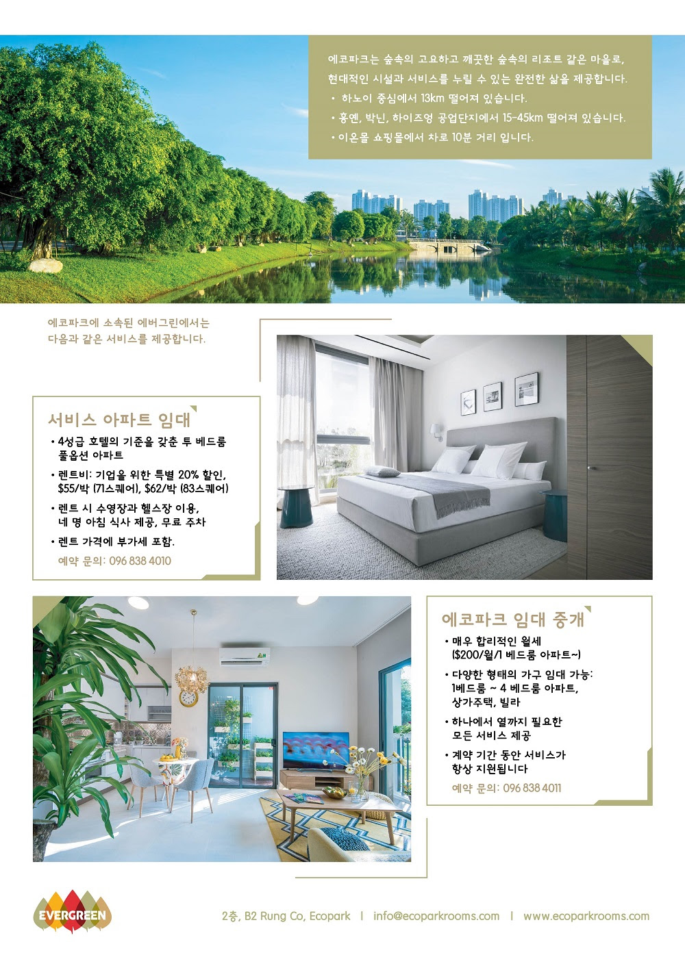 회원사 홍보 From US250 – Fully- furnished apartments/villas for rent at green city ECOPARK by 관리자 2019-06-25 621 댓글(0) 등록