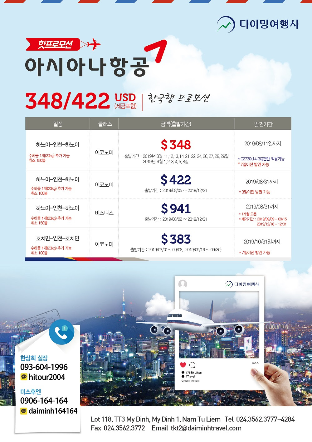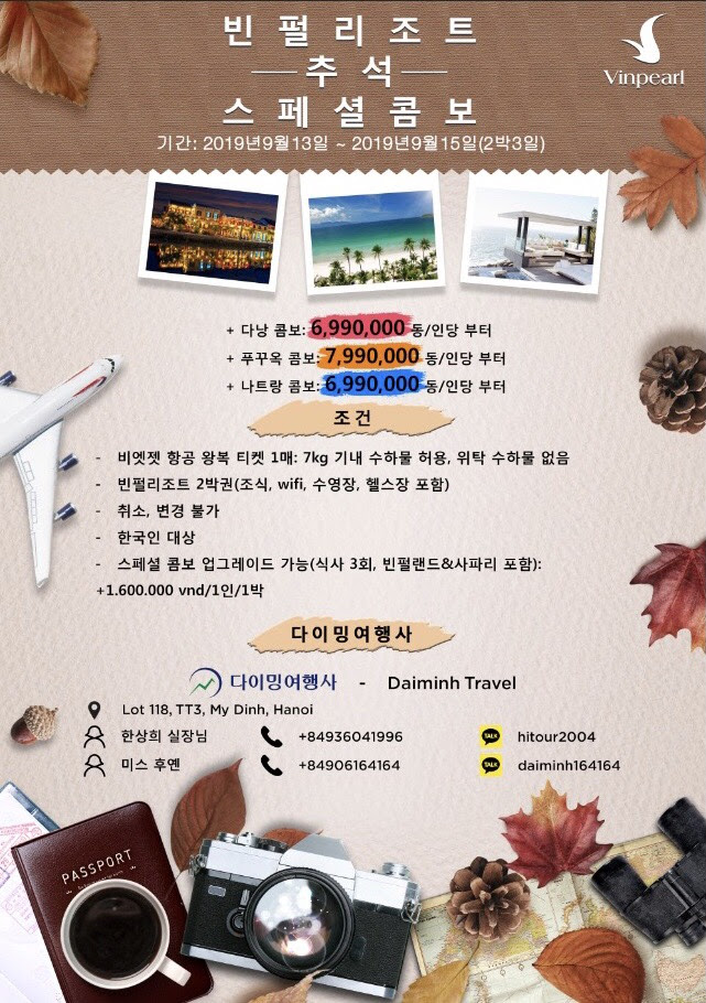 회원사 홍보 다이밍 여행사 : 추석 특가 프로모션 by 관리자 2019-08-08 597 첨부파일 20190808.jpg 204.34 KB 201908081.jpg 349.27 KB 댓글(0) 등록