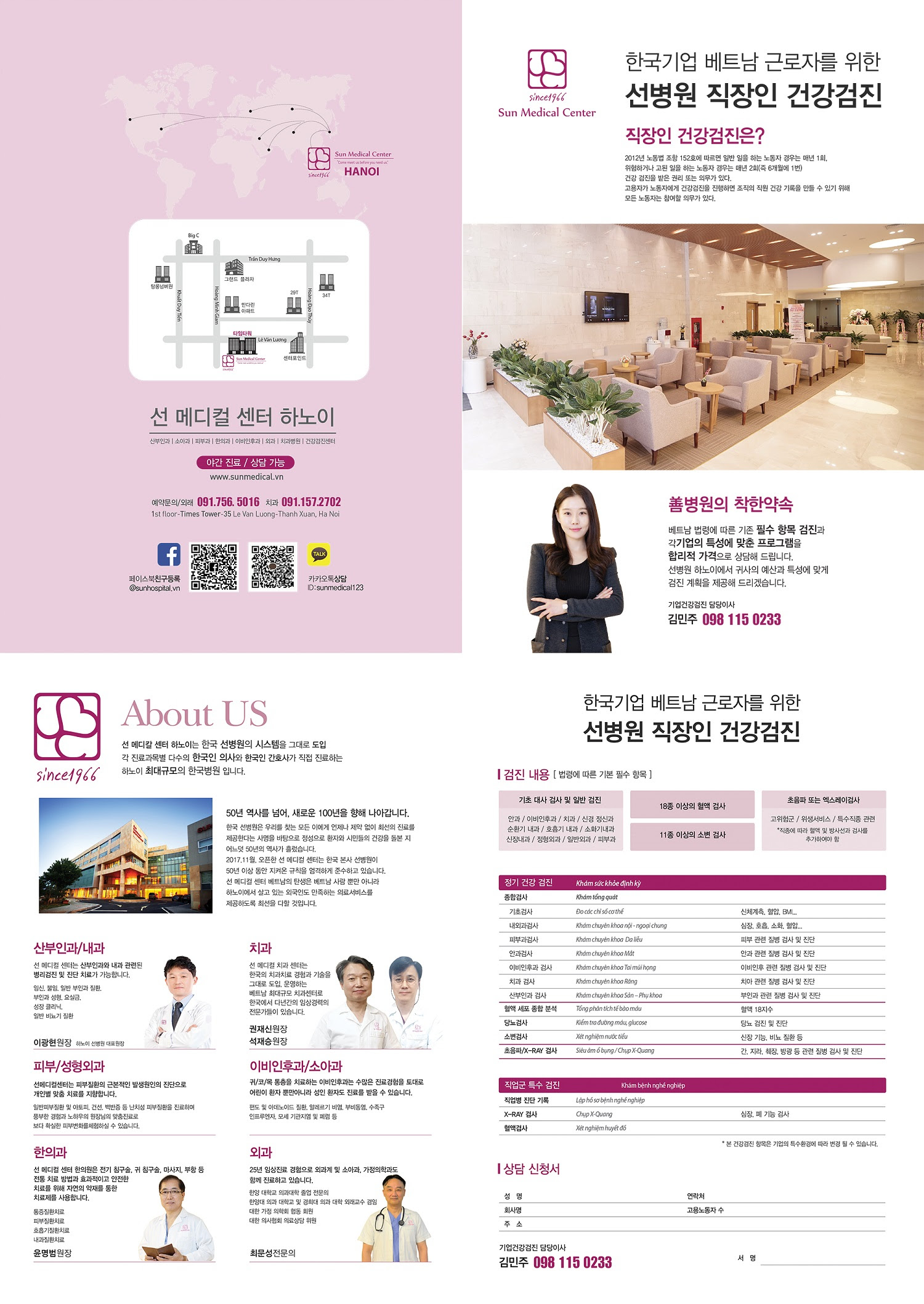 회원사 홍보 하노이 선병원 기업건강검진 by 관리자 2019-08-22 999+ 1. 참고자료 www.sunmedical.vn 2. 기업건강검진 결과지 샘플 *문의/상담전화 : 김민주 이사 H.P 098 115 0233 *첨부: 기업건강검진 리포트(Sample).pdf 첨부파일 20190822.pdf 598.42 KB 댓글(0) 등록