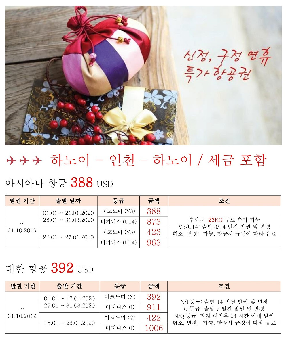 회원사 홍보 신정 구정 특가 항공권 by 관리자 2019-09-12 930 안녕하십니까? 항공권 프로모션 정보를 다음과 같이 보내 드립나다. 문의사항이 있으면 신월여행사로 연락해 주시길 바랍니다. 감사합니다. 첨부파일 201909122.jpg 202.74 KB 201909121.jpg 257.31 KB 댓글(0) 등록