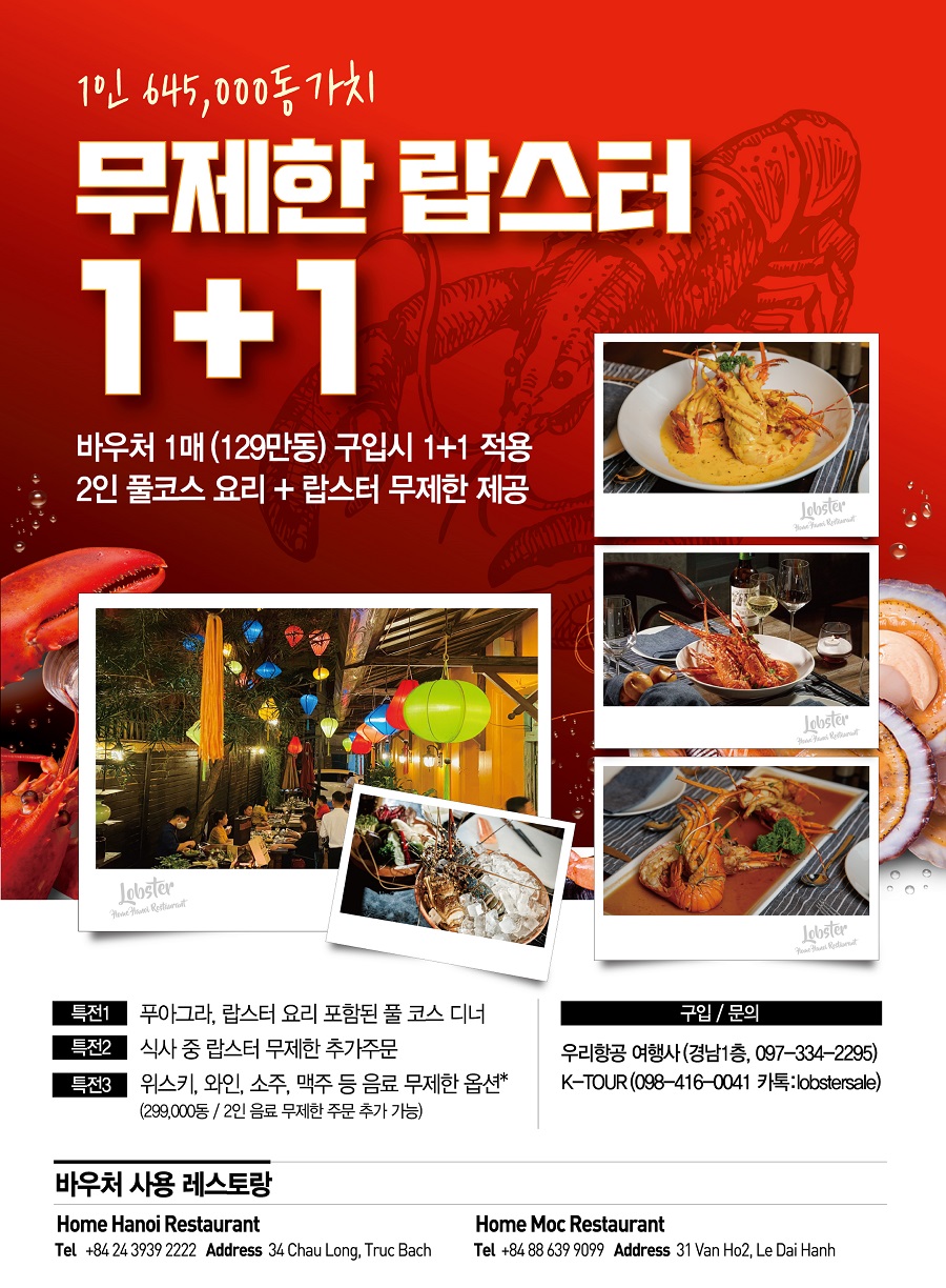 코참 회원사 여러분께, 하노이의 '무제한 랍스터' 식사권을 아래와 같이 판매합니다.
