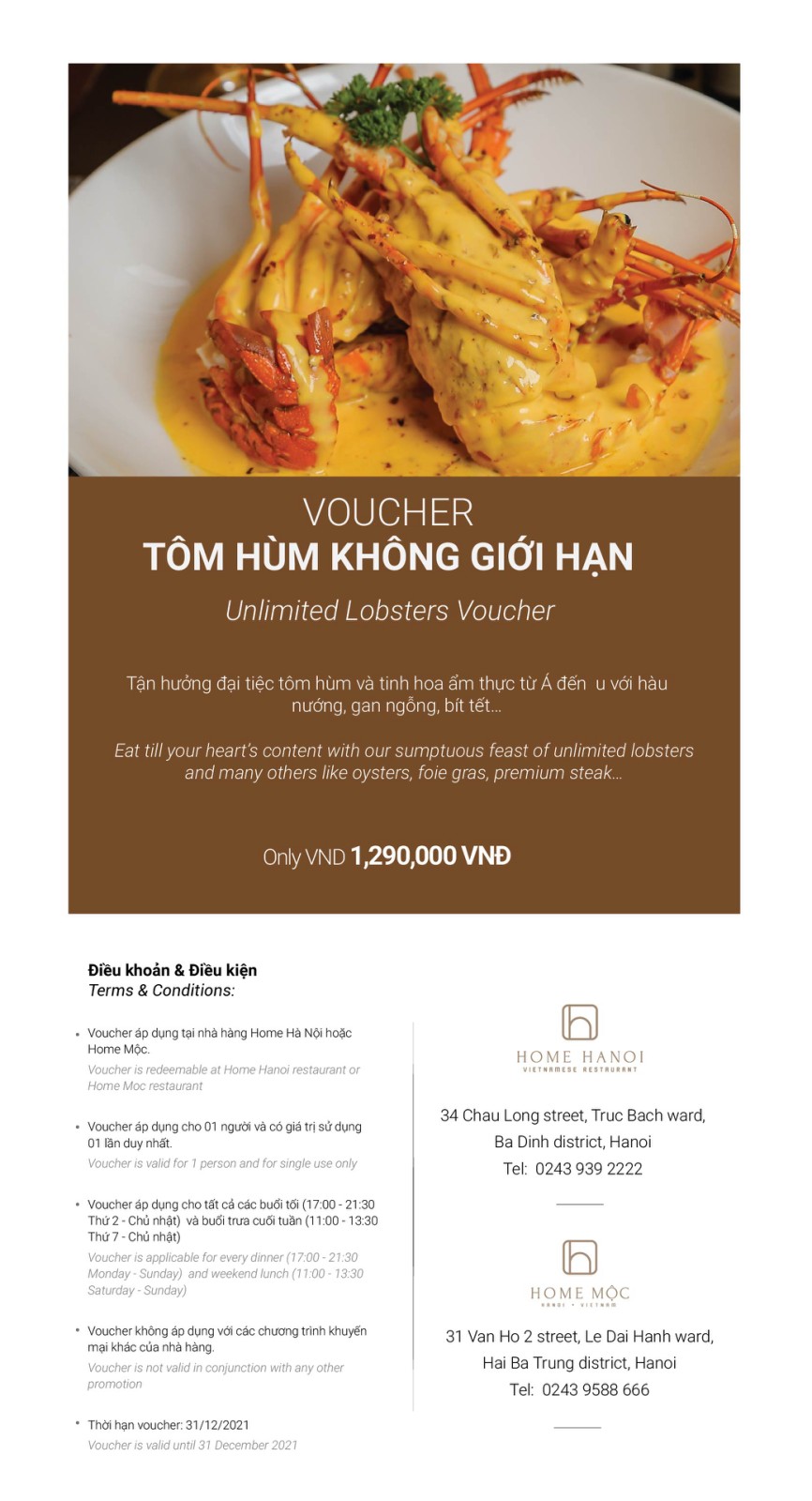 * 식사권 가격 : 1,290,000동/1장, 1+1 혜택 제공(1장으로 2인이 이용 가능하므로, 1인 부담금은 645,000동)