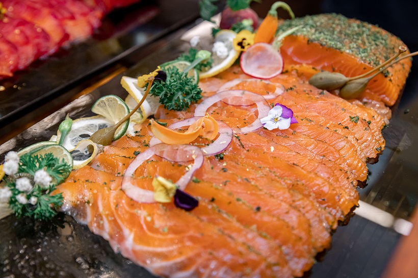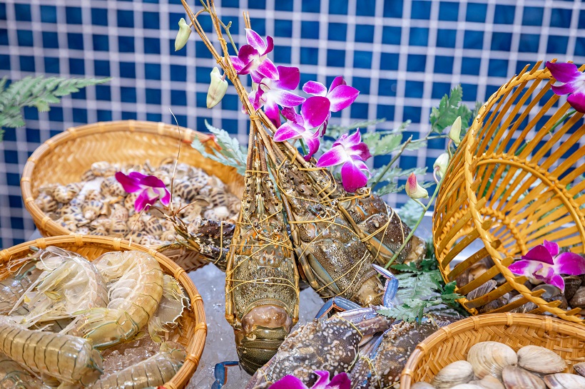 고급 요리 여행을 통해 신선하고 고품질의 재료로 선별된 독특한 아시아-유럽식 뷔페로 손님들을 놀라게 할 것입니다. 60가지 이상의 특선 메뉴가 있는 뷔페로 랍스터, 굴, 가리비, 문어와 같은 신선한 해산물, 바베큐 카운터의 구운 호주산 쇠고기 갈비, 맛있는 레드 와인 스튜 양 허벅지살, 신선한 스시와 사시미 등 시선을 사로잡는 디저트 등 모두 여러분의 입맛을 사로잡을 것입니다.