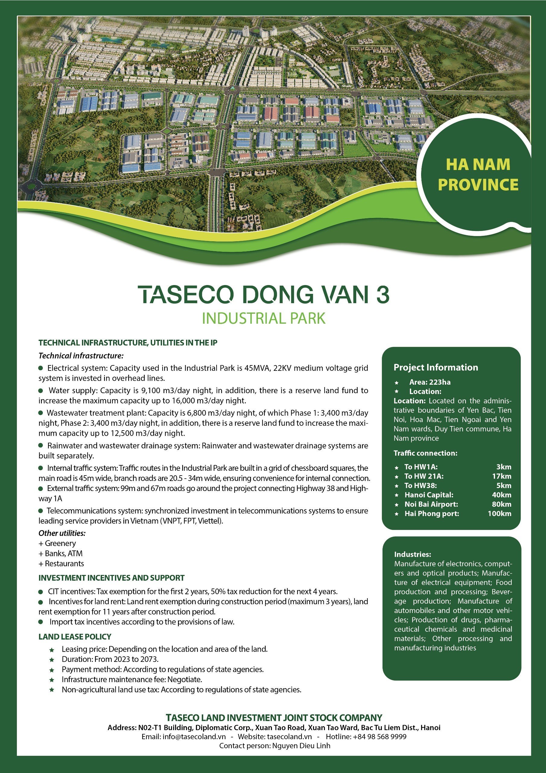Taseco Dong Van 3 Industrial Park in Ha Nam province by Taseco Land Investment JSC.