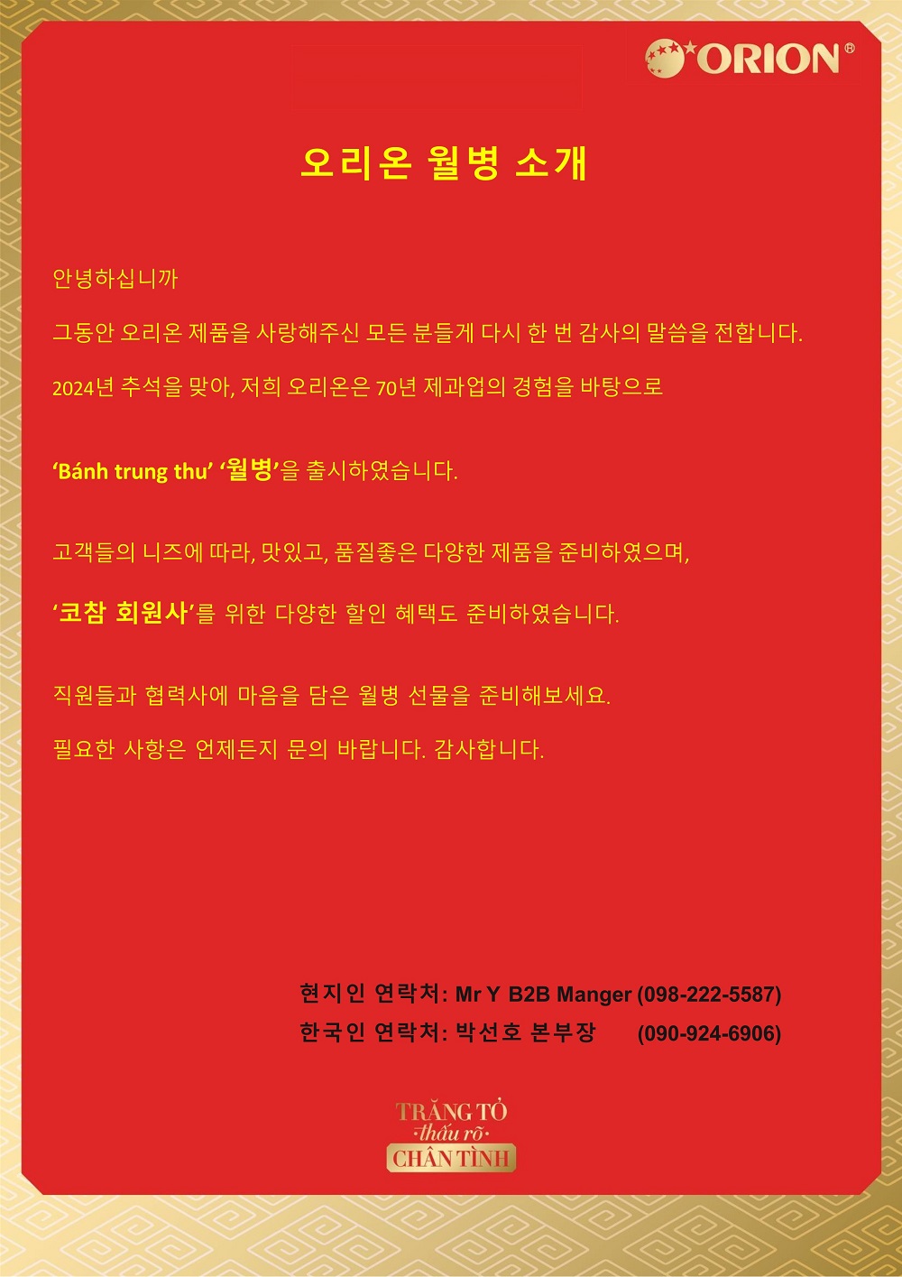 [홍보-Orion Food Vina] 2024년 오리온 추석 선물세트 Big Sale!