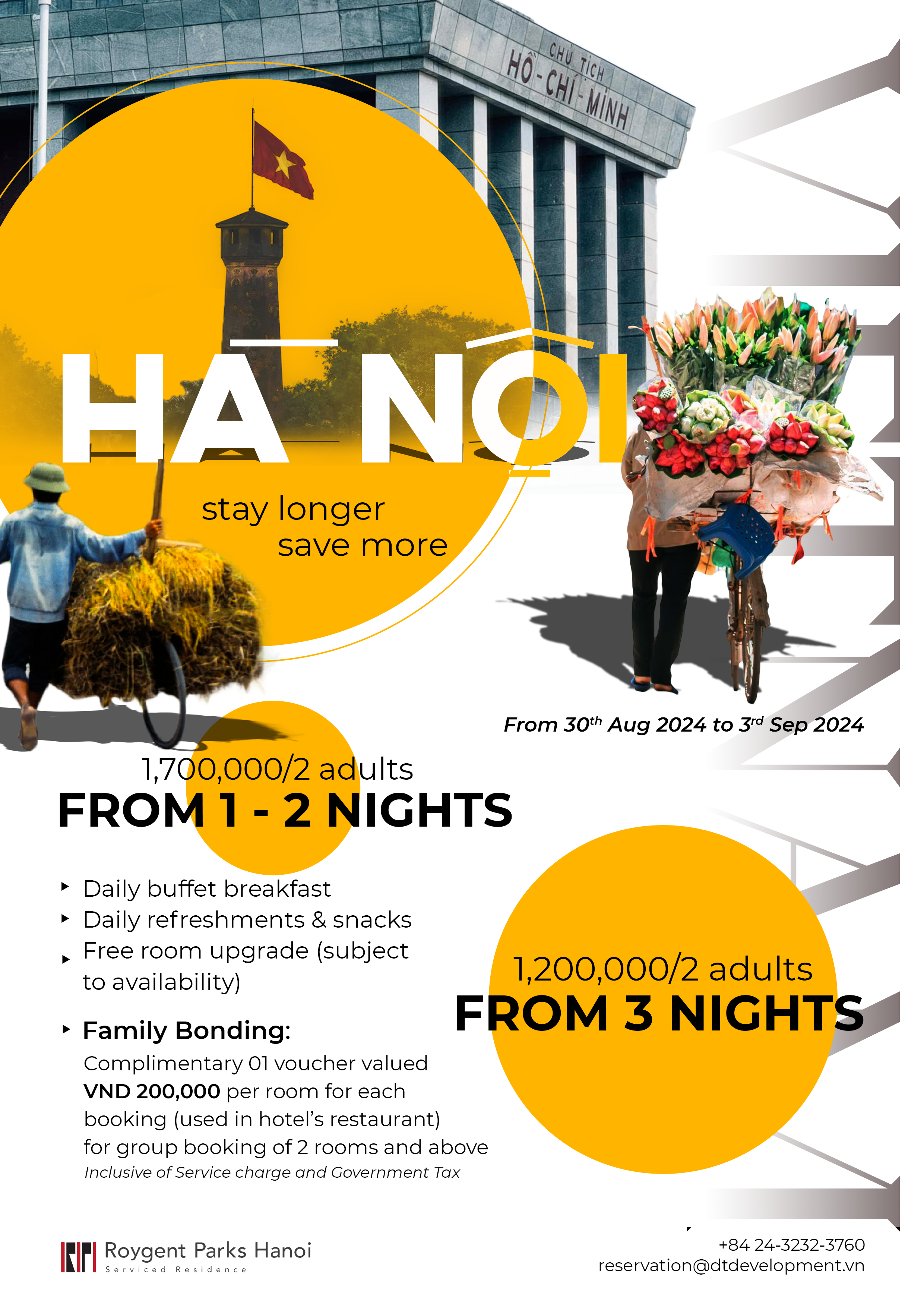 9월 연휴 계획은 세우셨나요. 가을의 시작을 로이젠트 파크 하노이에서의 호캉스는 어떠신가요.