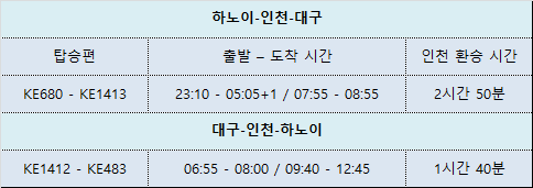 대한항공은 인천- 부산/대구 노선 환승전용 내항기 운항을 아래와 같이 안내 드립니다