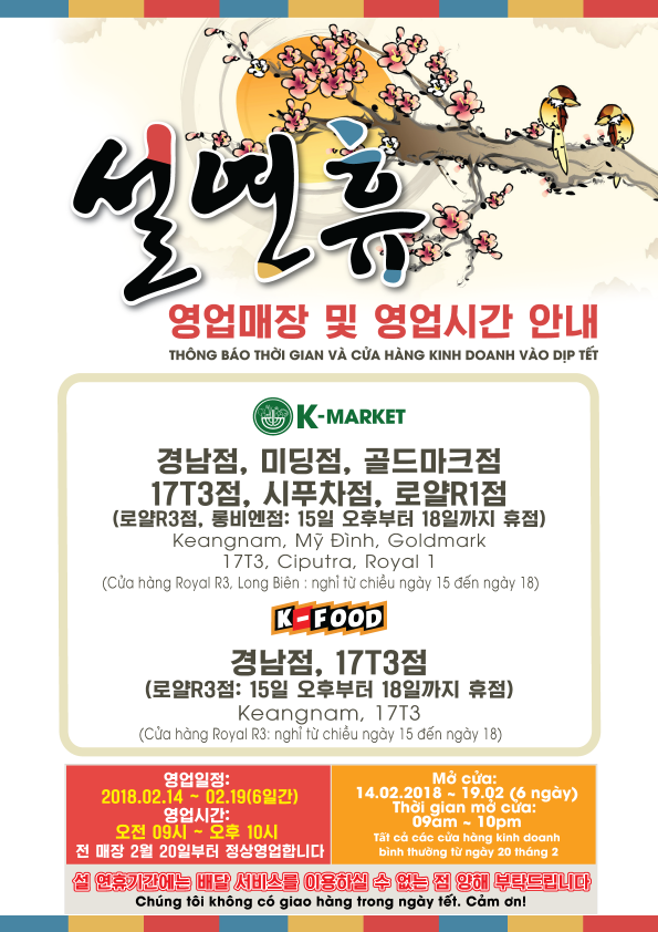 **2018 설 연휴간 K-Market & K-Food 영업안내**