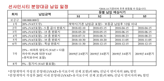 분양가 : 30-45백만동/㎡ (150~225만원)