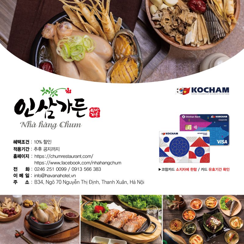 코참 가맹점인 인삼가든에서 다음과 같이 회원사 할인 혜택 기간을 연장했사오니, 많은 관심과 성원 부탁드립니다.