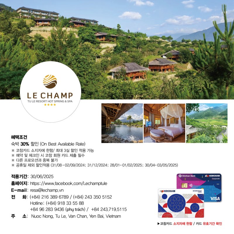 코참 가맹점인 LE CHAMP에서 코참 회원사를 대상으로 다음과 같이 할인 혜택을 제공하오니, 많은 관심과 이용 바랍니다.